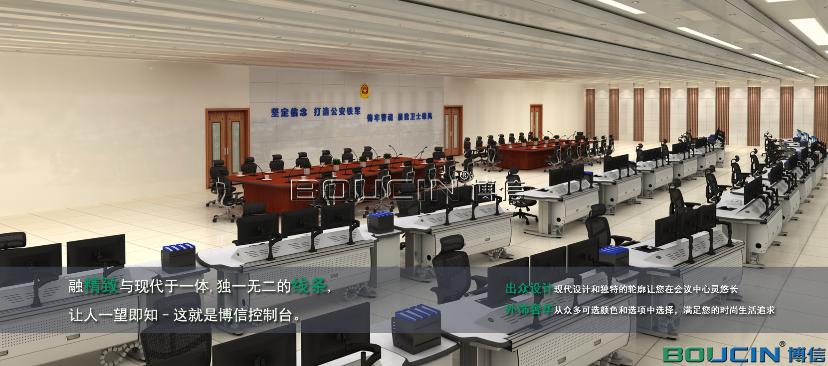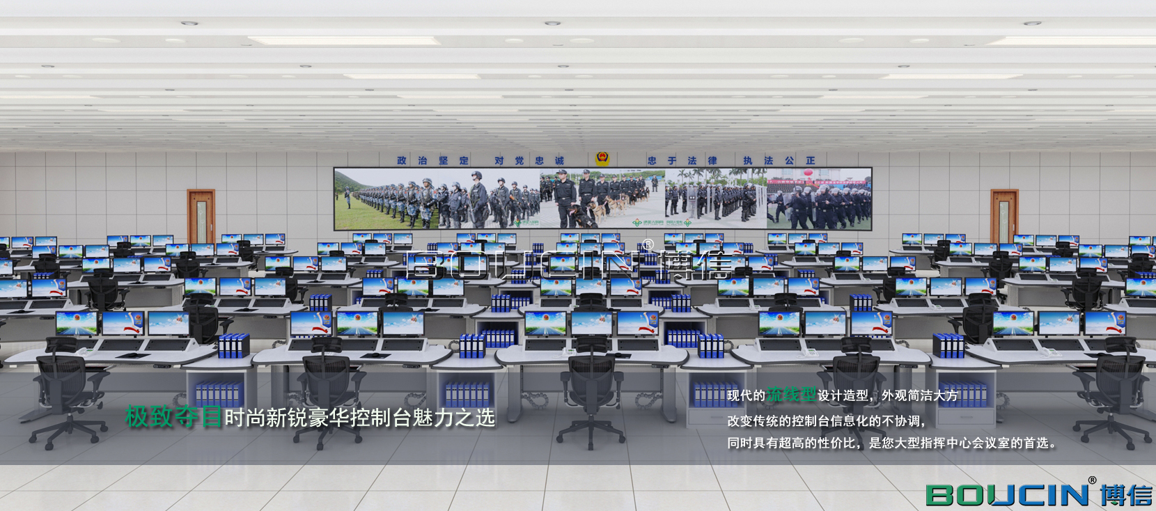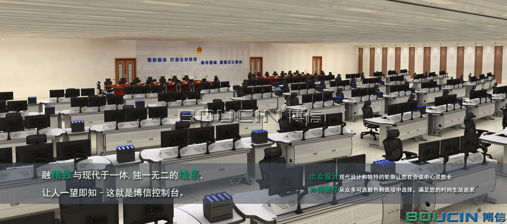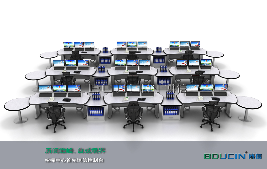博信控制臺BOUCIN STARS 系列產品采用了簡單的坐 站方式來解決控制中心的人性化挑戰:讓工作環境滿足用戶的使用需求。博信控制臺讓終端用戶通過觸控式按鈕來實現對工作環境的完全掌控。